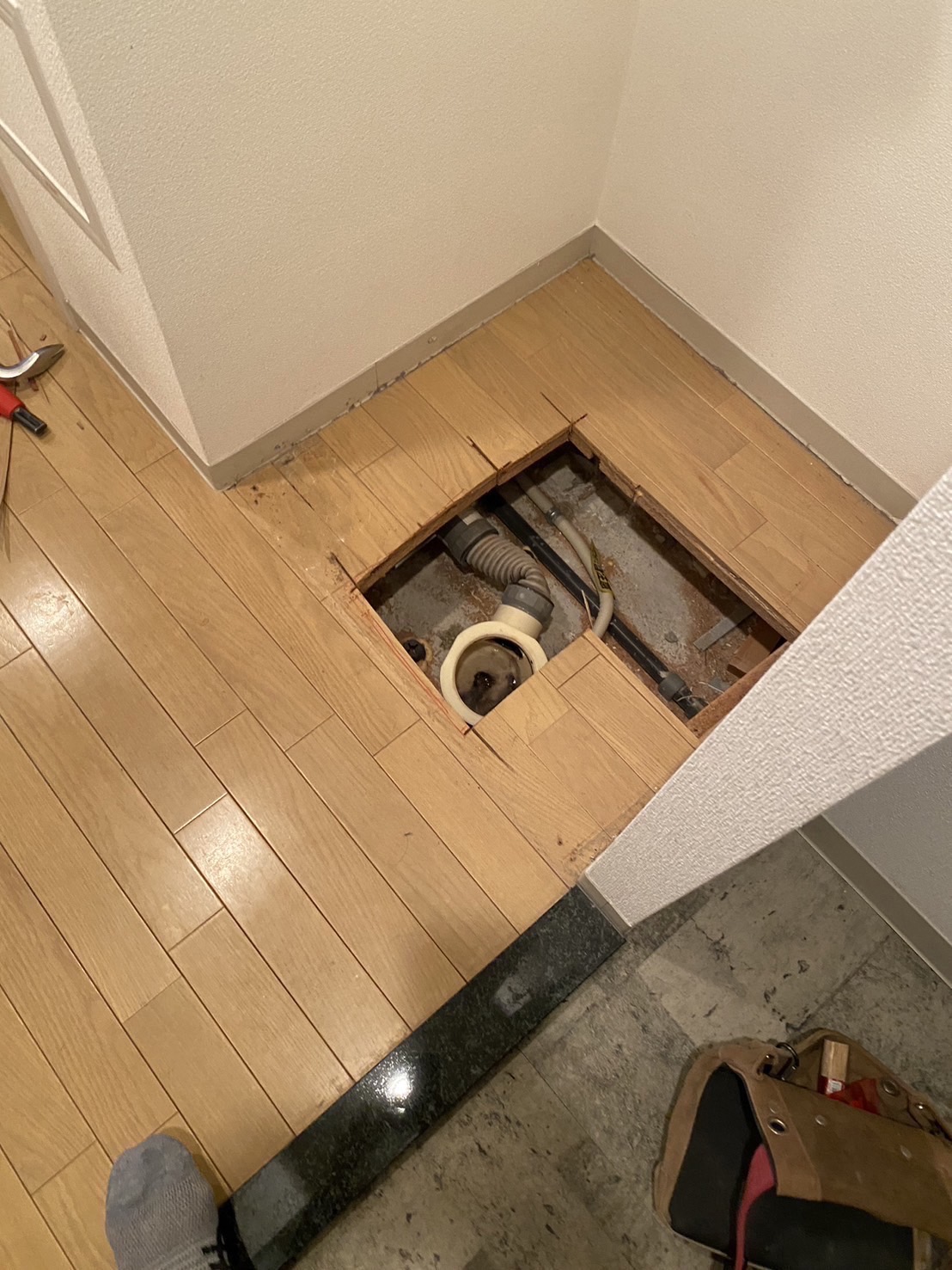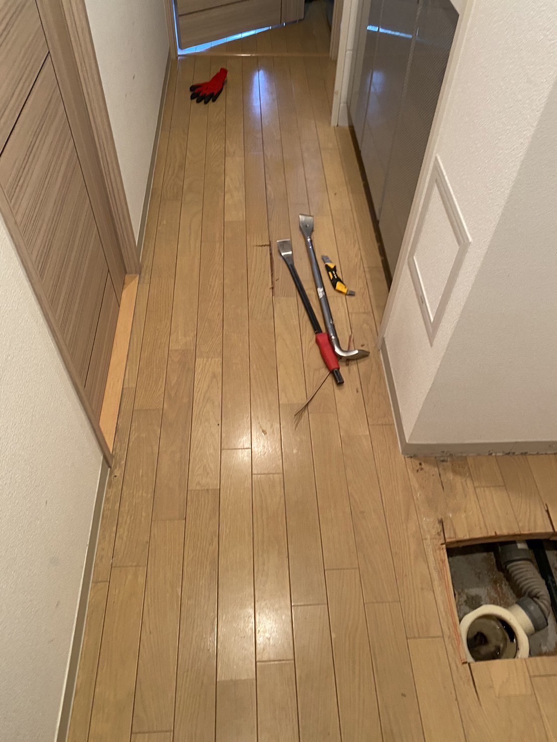 防水パンまわりを含めたマンションのフローリング張替え工事を行いました。